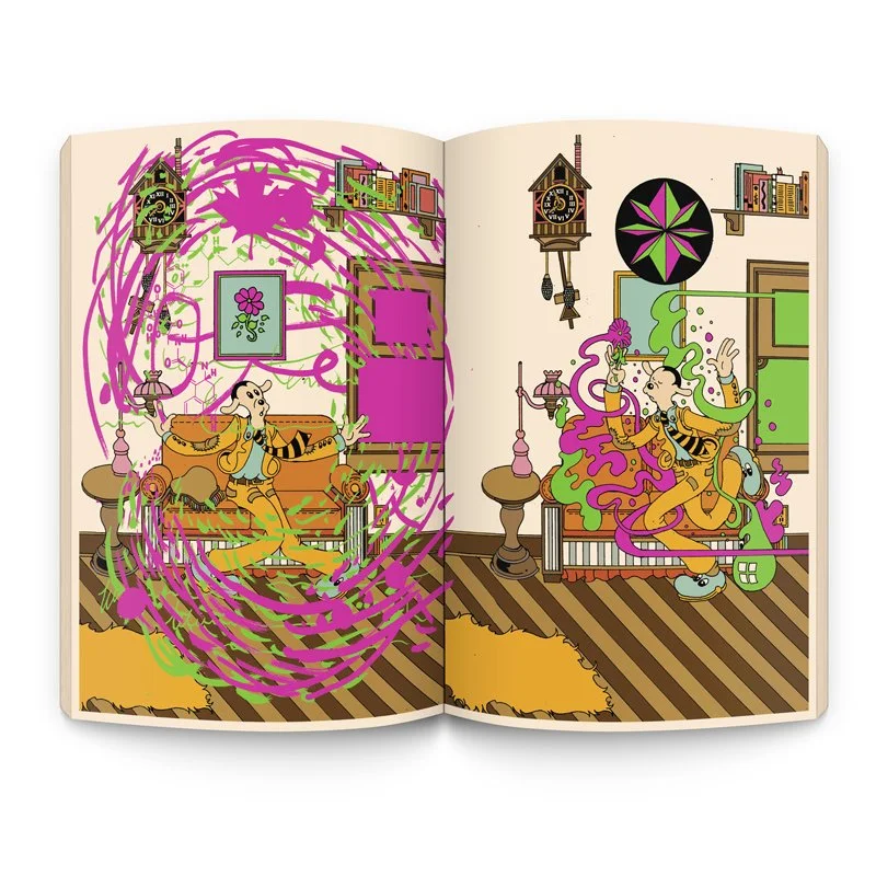 Illustrator, musician and self-described “comic stripper” Brian Blomerth has spent years combining classic underground art styles with his bitingly irreverent visual wit in zines, comics, and album covers. With Brian Blomerth’s Bicycle Day, the artist has produced his most ambitious work to date: a historical account of the events of April 19, 1943, when Swiss chemist Albert Hofmann ingested an experimental dose of a new compound known as lysergic acid diethylamide and embarked on the world’s first acid trip. Featuring an introduction from renowned ethnopharmacologist, Dennis McKenna, Brian Blomerth’s Bicycle Day combines an extraordinary true story told in journalistic detail with the artist’s gritty, timelessly Technicolor comix style that is a testament to mind expansion, and a stunningly original visual history.